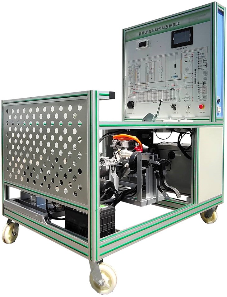 磷酸鐵鋰動(dòng)力電池包及管理系統(帶CAN通訊,含24單體電池,放電繼電器,充電繼電器,預充繼電器,預充電阻,霍爾電流傳感器,維修開(kāi)關(guān),保險,充電接口,放電接口,低壓控制接口,動(dòng)力電池采集模塊,BMS電池管理系統主控模塊,7寸液晶顯示屏)、驅動(dòng)電機及運行部分、電子油門(mén)總成、換擋機構總成、儀表(帶CAN通訊)、變速箱、左右傳動(dòng)軸、左右前輪碟剎、磁粉制動(dòng)器(左右)、手動(dòng)張力控制器,助力器帶泵總成,真空泵總成、電動(dòng)真空助力剎車(chē)系統、真空壓力傳感器、真空罐總成、國標充電插口與充電槍、車(chē)載充電機(帶CAN通訊)、DC-DC模塊、故障設置系統、輔助蓄電池(12V45AH)、蓄電池斷電開(kāi)關(guān)、急停開(kāi)關(guān)、上位機軟件及數據線(xiàn)(電機與電池控制單元)、一體化全鋁合金型材搭建的移動(dòng)臺架(1500×1000×1700mm ,帶自鎖腳輪裝置,帶安裝檢測端子的原理面板948×898mm)、故障考核系統、設備操作說(shuō)明書(shū)。