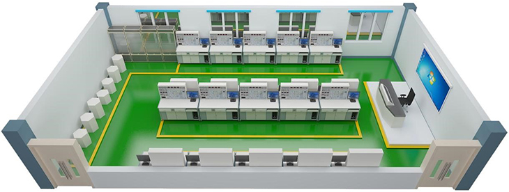 實(shí)訓屏部分:采用優(yōu)質(zhì)鋼板斜面設計精加工,面板采用優(yōu)質(zhì)鋁板,彩色噴繪工藝,顏色協(xié)調、設計合理。主控電源、主控器材、控制電源等布局科學(xué)操作方便。