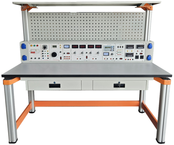 本實(shí)訓臺主要由實(shí)訓主機箱、儀器架、電源控制箱、獨立實(shí)訓電路模塊、實(shí)訓桌(含磁吸式實(shí)訓基座)、儲存柜、學(xué)生凳等組成。