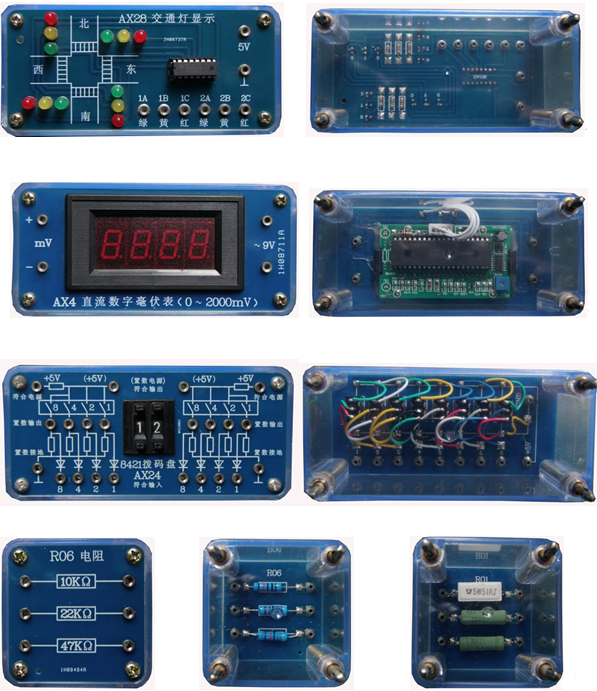 (透明電子阜創(chuàng )新元件模塊示例圖,140多只透明有機塑料封閉元件盒)