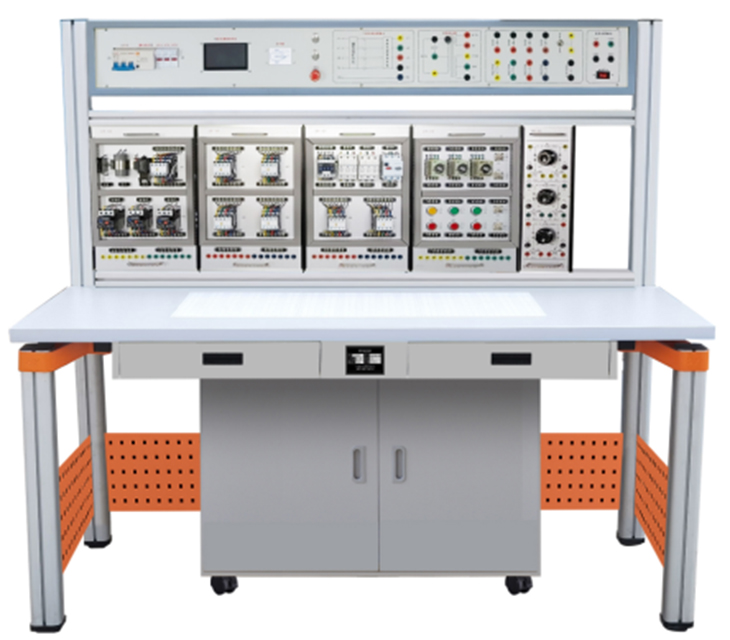 掛箱上已安裝有熔斷器、鈕子開(kāi)關(guān)、交流接觸器、時(shí)間繼電器、直流接觸器、按鈕開(kāi)關(guān)、信號指示燈、熱繼電器等,所有器件均采用國內外知名品牌。各種實(shí)訓元器件的接線(xiàn)都在接線(xiàn)端子排上進(jìn)行接線(xiàn),避免了因長(cháng)期在器件本身進(jìn)行螺絲拆裝而導致元器件的損耗,通過(guò)走線(xiàn)槽走線(xiàn),進(jìn)行工藝布線(xiàn)訓練。實(shí)訓電路與裝置電源的連接通過(guò)安全插座和高可靠護套結構手槍插連接線(xiàn),安全快捷。