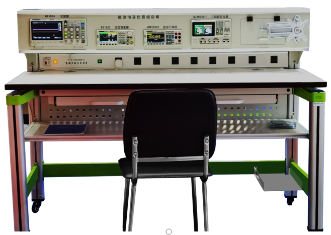 本實(shí)訓臺主要由實(shí)訓機頭、儀器架、電源控制箱、獨立實(shí)訓電路模塊、實(shí)訓桌(含磁吸式實(shí)訓基座)、儲存柜、學(xué)生凳等組成。