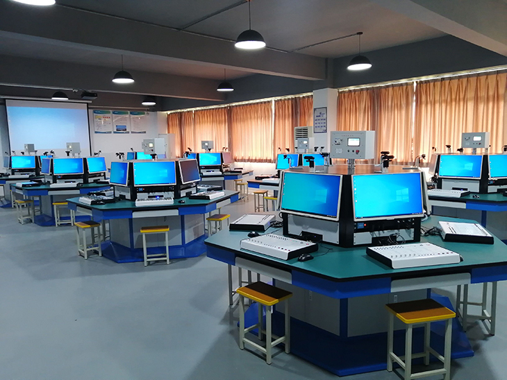 電工技能工作島由六邊形工作臺、六邊形電源控制屏及典型工作任務(wù)組成,能同時(shí)容納6名學(xué)生在設備上進(jìn)行操作。