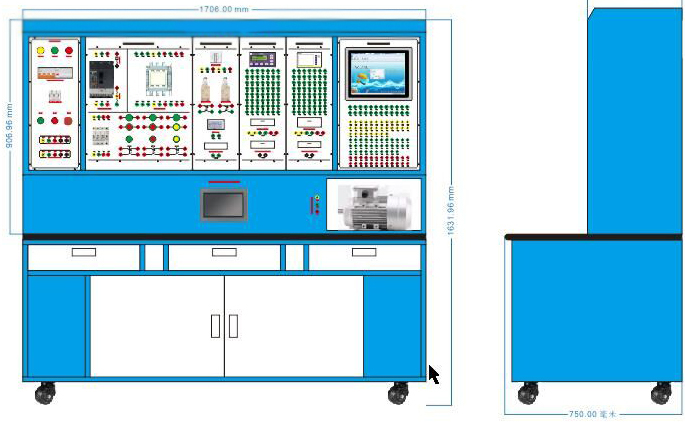 4.實(shí)驗臺體尺寸: 約1700mm長(cháng)×1600mm高×750mm寬