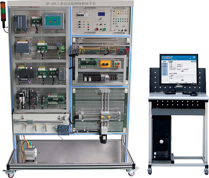工業(yè)自動(dòng)化網(wǎng)絡(luò )控制實(shí)訓平臺,工業(yè)控制網(wǎng)絡(luò )是近年來(lái)發(fā)展形成的自動(dòng)控制領(lǐng)域的網(wǎng)絡(luò )技術(shù),是計算機技術(shù)、通信技術(shù)與自動(dòng)控制技術(shù)相結合的產(chǎn)物,其主要包括現場(chǎng)總線(xiàn)技術(shù)和工業(yè)以太網(wǎng)技術(shù)。為了使院校自動(dòng)化專(zhuān)業(yè)的學(xué)生能夠加深對工業(yè)控制網(wǎng)絡(luò )的理解,直接接觸和操作先進(jìn)的工業(yè)控制設備,熟悉工業(yè)現場(chǎng)總線(xiàn)的原理和運行機制,使之走上工作崗位后能立即參與解決工程實(shí)際問(wèn)題,我們研制了一套工業(yè)控制網(wǎng)絡(luò )綜合實(shí)驗系統。該實(shí)驗系統模擬工業(yè)現場(chǎng)實(shí)際情況,通過(guò)PROFIBUS總線(xiàn)和工業(yè)以太網(wǎng),建立主從站通信系統,實(shí)現各類(lèi)傳感器的實(shí)時(shí)數據采集和遠程監控。同時(shí),該實(shí)驗平臺還可以為現場(chǎng)總線(xiàn)技術(shù)、工業(yè)自動(dòng)化與控制網(wǎng)絡(luò )、集散控制系統、工業(yè)自動(dòng)化系統課程設計、過(guò)程控制等專(zhuān)業(yè)課程服務(wù)。