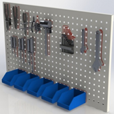 工具收納墻:2.0mm優(yōu)質(zhì)厚鋼網(wǎng)板制作而成,能固定于墻體上;有10多個(gè)工具位置,每個(gè)工具位置帶有定制目視化管理標識,用于存放各種工具及螺絲螺母等零件,形象直觀(guān),存放方便,利于搬運,占用空間小,是工具零件存儲保管的理想載體。