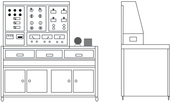 實(shí)訓工作臺的操作部分可升降,學(xué)生聽(tīng)課時(shí)操作面板可降落與臺面齊平作為課桌使用,實(shí)訓時(shí)操作面板升起進(jìn)行操作實(shí)驗。