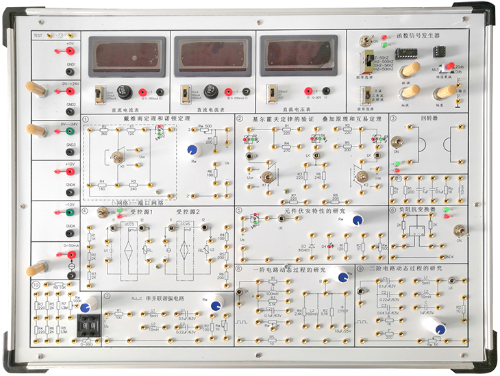 該系統以箱式設計,集電源、測量用電表、實(shí)驗模塊于一體,實(shí)驗時(shí)只需外接信號源等即可在每個(gè)實(shí)驗模塊中進(jìn)行實(shí)驗,實(shí)驗箱連接部分采用了鎖緊疊插式鍍金大孔,連接可靠、壽命長(cháng),實(shí)驗數據精確,面板采用了雙面設計工藝,正面為線(xiàn)路原理,反面為具體線(xiàn)路分布和元件,使學(xué)生在實(shí)驗時(shí)對原理一目了然。