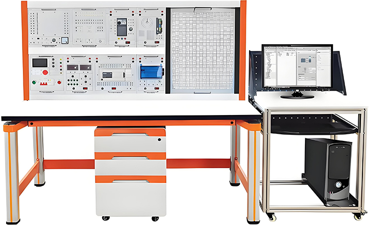 高級維修電工技能實(shí)訓考核裝置主要用于職業(yè)院;蚺嘤枡C構的電氣自動(dòng)化、機電一體化等專(zhuān)業(yè)教學(xué),幫助學(xué)員掌握電氣控制原理、PLC應用、電氣布線(xiàn)等實(shí)操技能,實(shí)現理論與實(shí)踐的結合。電氣自動(dòng)化實(shí)訓平臺,包含多組電氣控制模塊,如各類(lèi)開(kāi)關(guān)、儀表、繼電器、可編程邏輯控制器(PLC)等,用于模擬實(shí)際電氣系統的控制與運行場(chǎng)景。