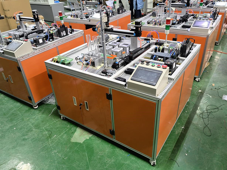 2、以上模塊對應以下單元:PLC單元、485通信單元、工業(yè)視覺(jué)識別單元、RFID產(chǎn)品溯源單元、氣動(dòng)控制基本單元、變頻調速單元、觸摸屏單元、以太網(wǎng)交換機、伺服系統控制單元等組成、溫度檢測變送單元。