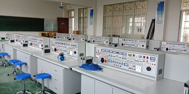 電子電工實(shí)訓室,電工實(shí)訓臺,電工實(shí)訓設備,電子電工實(shí)驗臺具有較完善的安全保護措施,較齊全的功能(詳見(jiàn)實(shí)驗臺結構簡(jiǎn)介)。實(shí)驗桌中央配有通用電路板,電路板注塑而成,表面布有九孔成一組相互聯(lián)通的插孔,元件盒在其上任意拼插成實(shí)驗電路,元件盒盒體透明,直觀(guān)性好,盒蓋印有永不褪色元件符號,線(xiàn)條清晰美觀(guān)。盒體與盒蓋采用較科學(xué)的壓卡式結構,維修拆裝方便。元器件放置在實(shí)驗桌下邊左右柜內,大大提高了管理水平,規劃化程度,大大減輕了教師實(shí)驗準備工作。