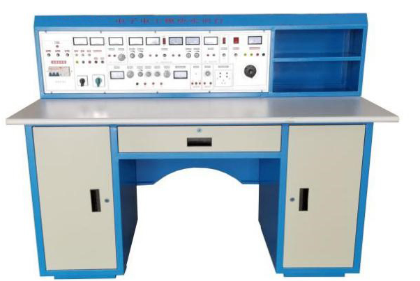 采用鐵質(zhì)雙層亞光噴塑結構,右邊是儀器存放格。桌子中間是抽屜,放置常用工具,桌子下部左右是元件儲存柜,放置實(shí)驗元器件。桌中央配置通用九孔電路板(尺寸:35×30cm ),根據實(shí)驗電路在其上任意拼插元件盒成實(shí)驗電路,元件盒盒體透明直觀(guān),內裝元件一目了然,盒蓋印有永不褪色元件符號,盒蓋與盒體結合采用較科學(xué)的壓卡式結構,維修拆裝方便。每張臺桌配有一粒膠皮板,保護通用底板與桌面(如需在桌上放置工具、焊接等)。
