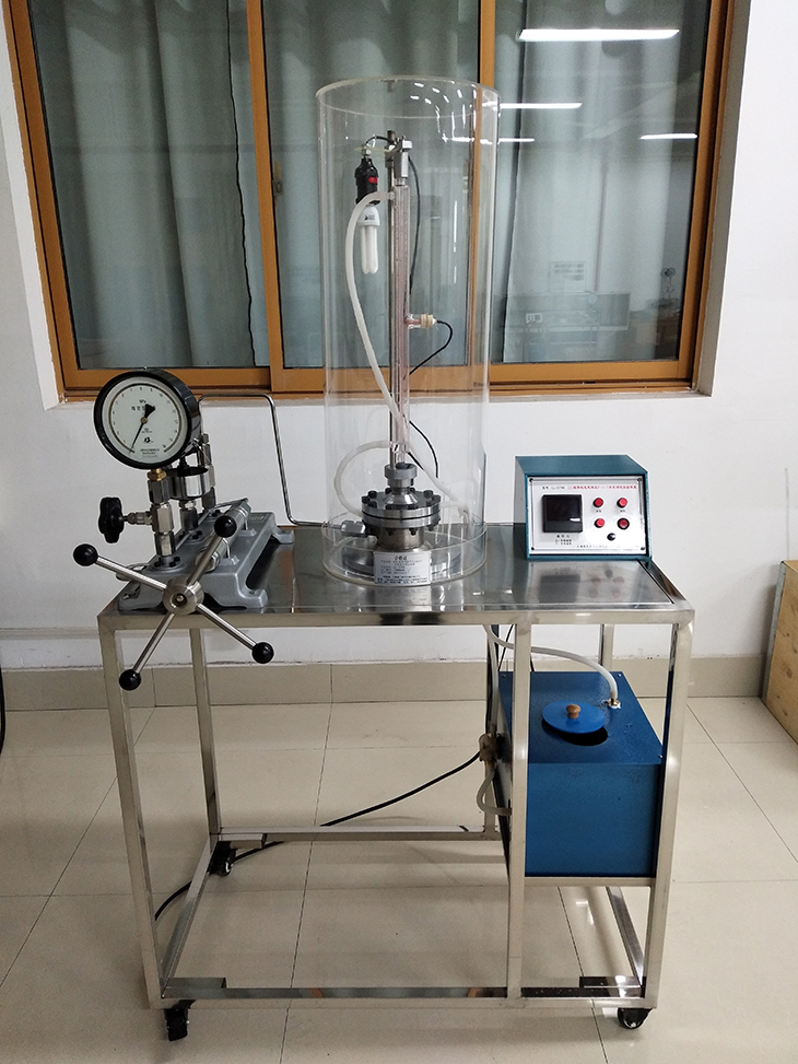 3、高壓容器,用45號鋼加工焊接而成,表面采用鍍鉻處理;高壓玻璃管,厚度3mm,耐壓11MPa。