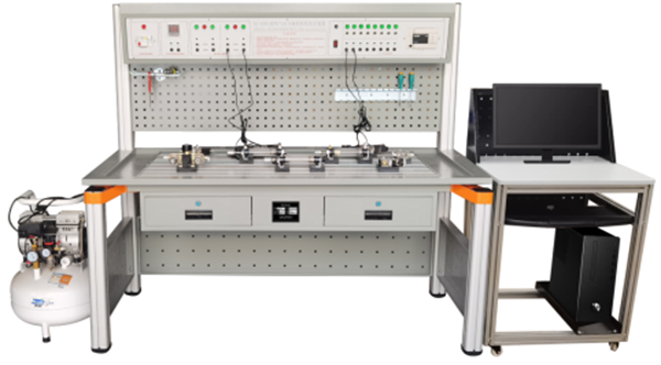 實(shí)驗臺由實(shí)驗桌、實(shí)驗操作區、網(wǎng)孔工具掛板、靜音氣泵、常用氣動(dòng)元件、主控機箱、電腦桌等幾部分組成。