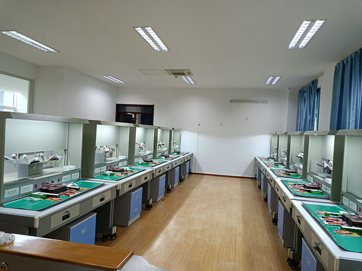 3.經(jīng)濟性此實(shí)訓臺為2人座,裝有照明日光燈、看板(用來(lái)夾資料)、儀表臺、插座,2個(gè)抽屜。學(xué)生在這里可以仿真生產(chǎn)過(guò)程(如:工藝流程的編制、線(xiàn)路板的焊接、線(xiàn)路板的調試、整體產(chǎn)品的組裝),組裝后的裝配線(xiàn)安全、可防靜電。