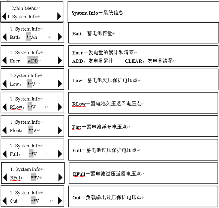 Ø 系統工作狀況、蓄電池的剩余電量等的變化;